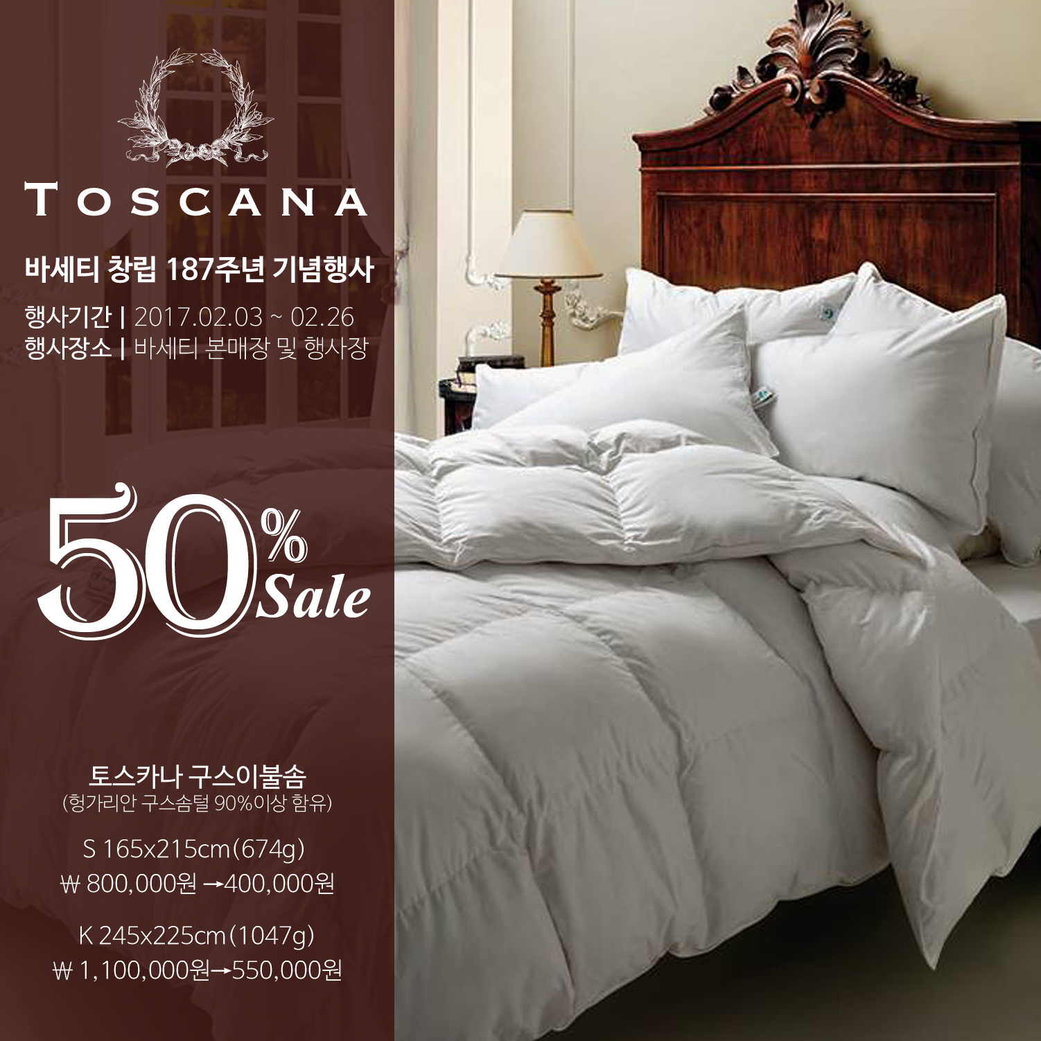 | [바세티] 창립 187주년 기념 이벤트 (TOSCANA GOOSE 50% BIG!SALE) | ||