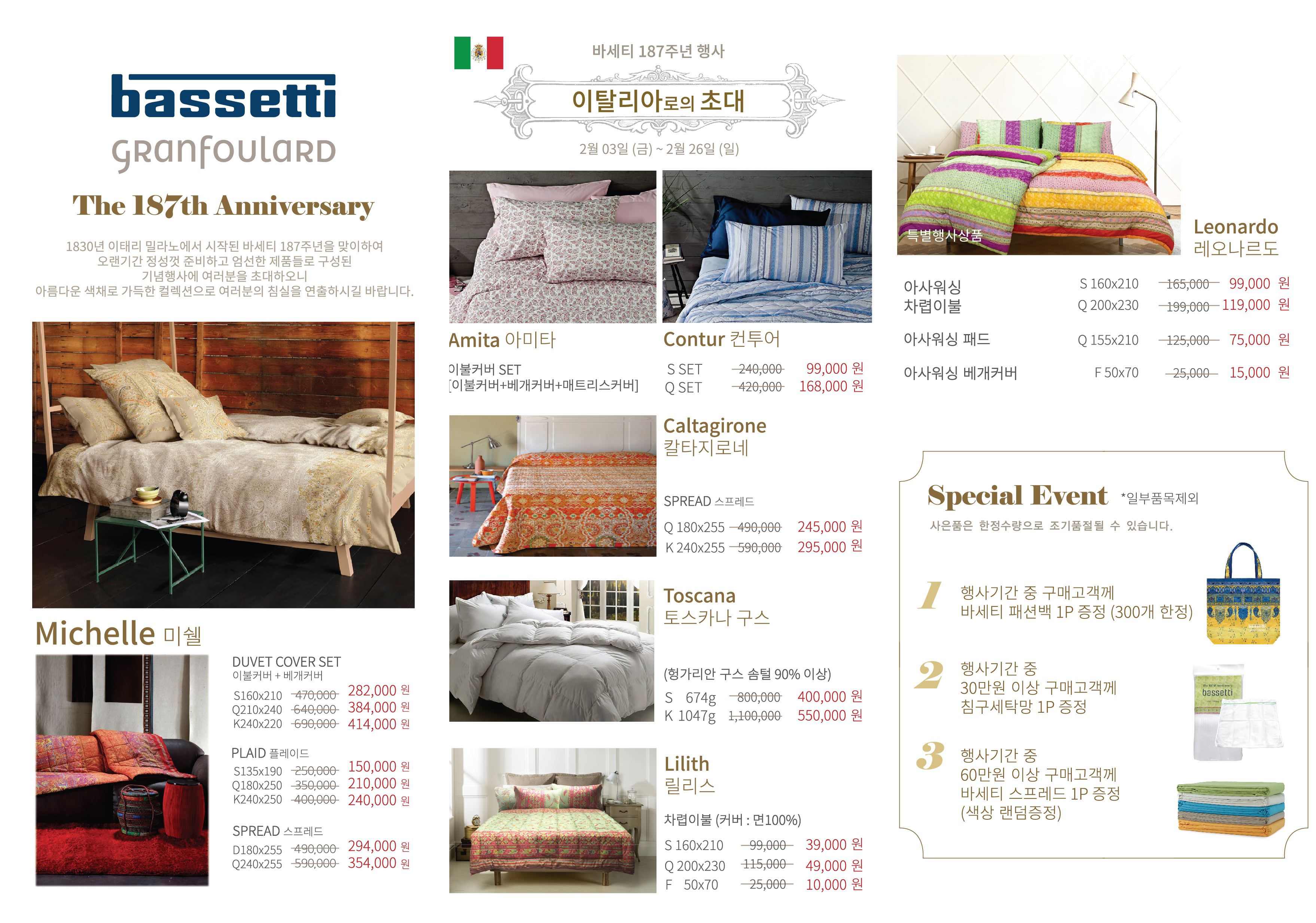 [바세티] 창립 187주년 기념 이벤트 (sempre bassetti 특별할인)