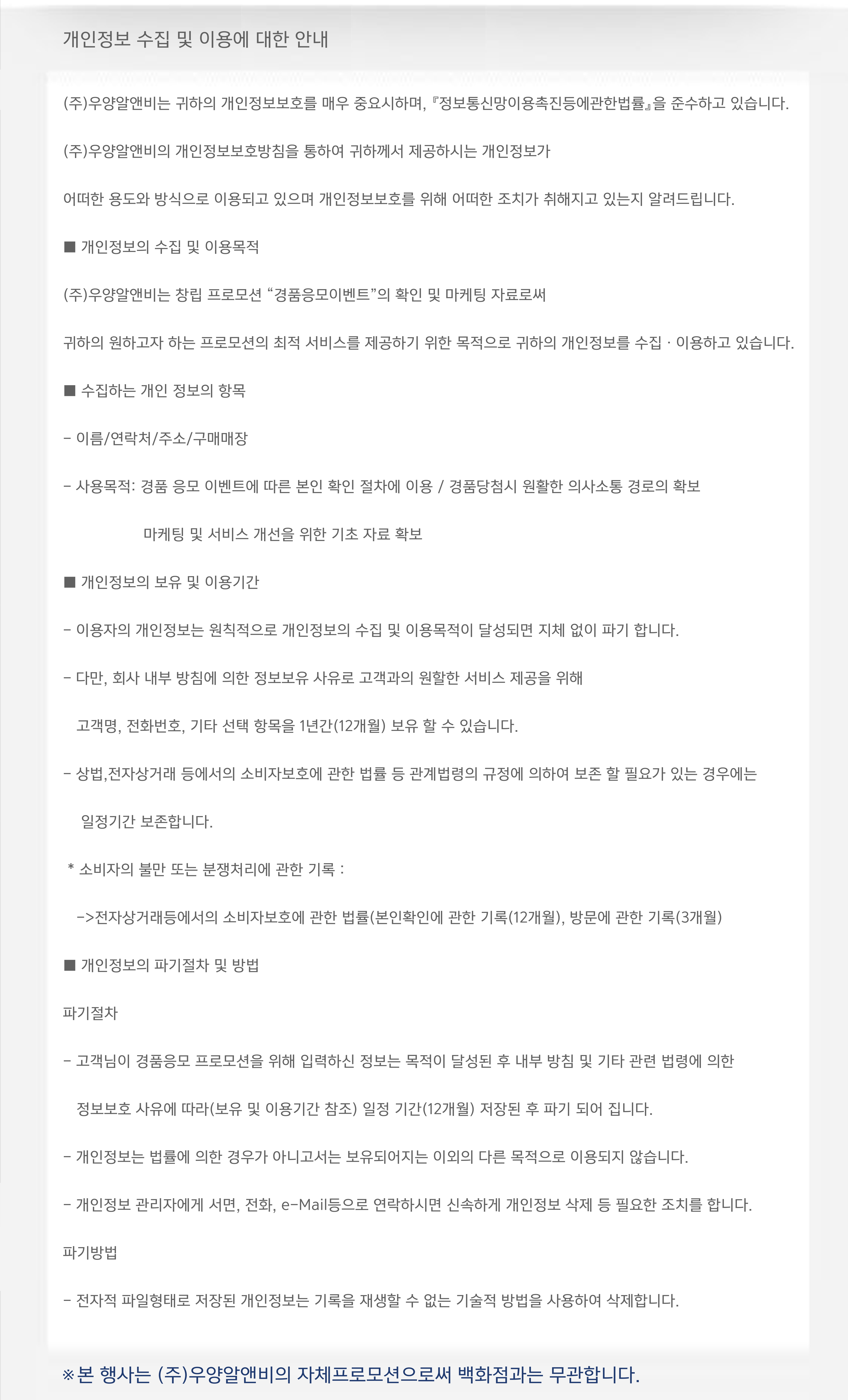 우양창립24주년 경품응모이벤트 제품교환권 증정 안내입니다.