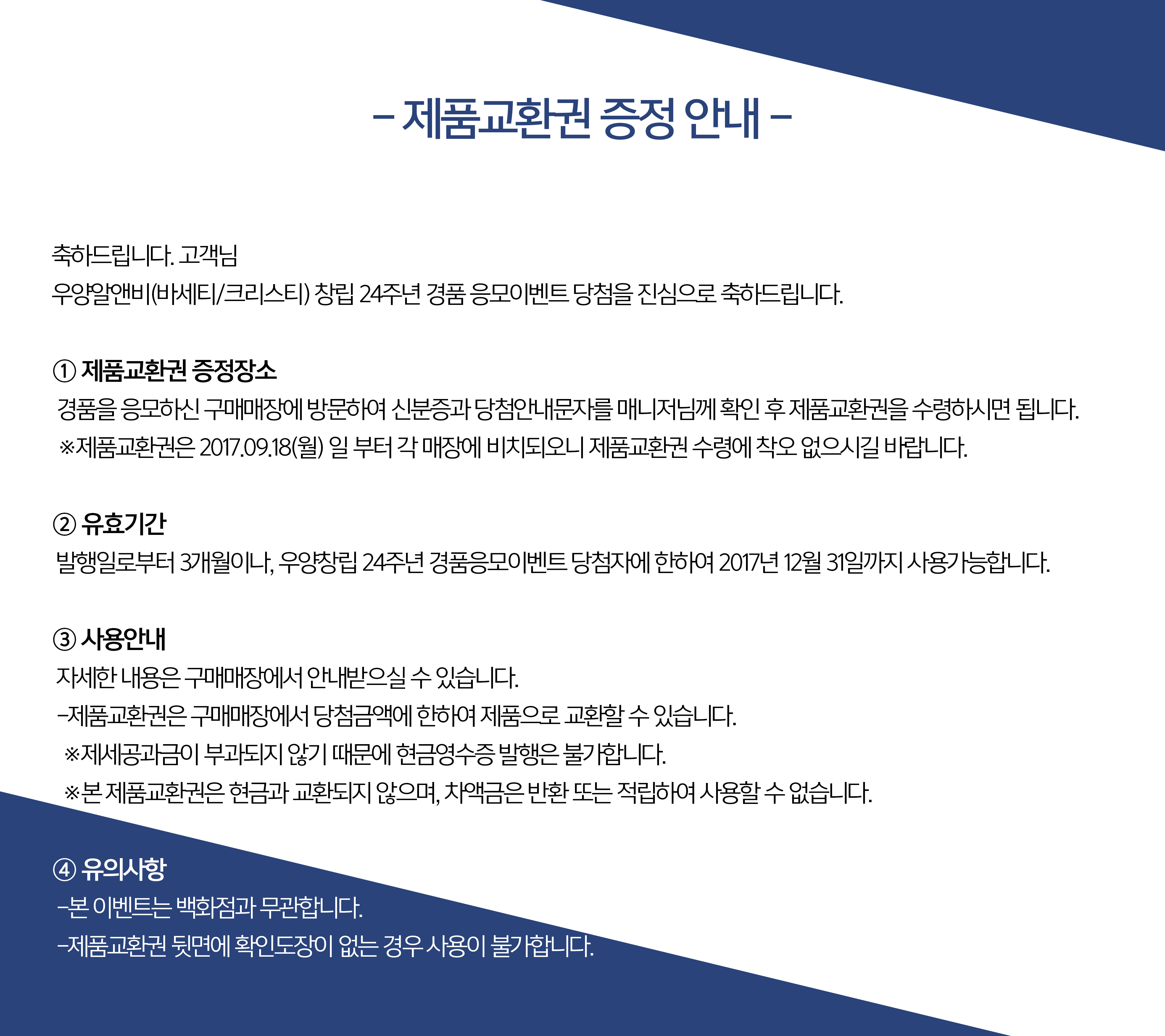 | 우양창립24주년 경품응모이벤트 제품교환권 증정 안내입니다. | ||
