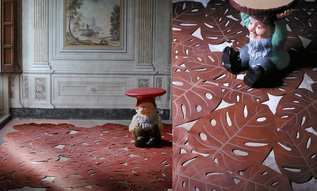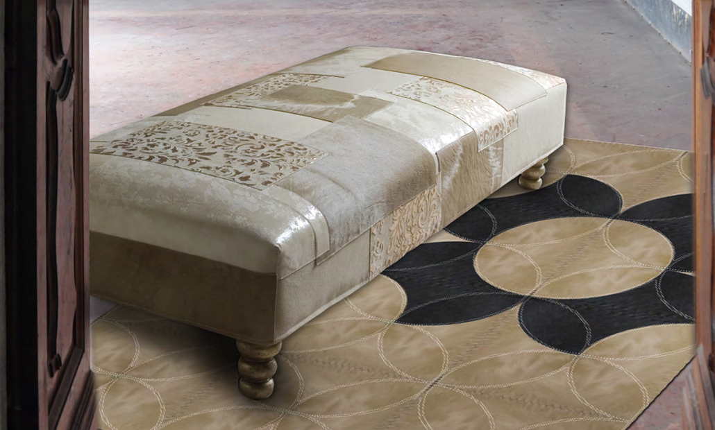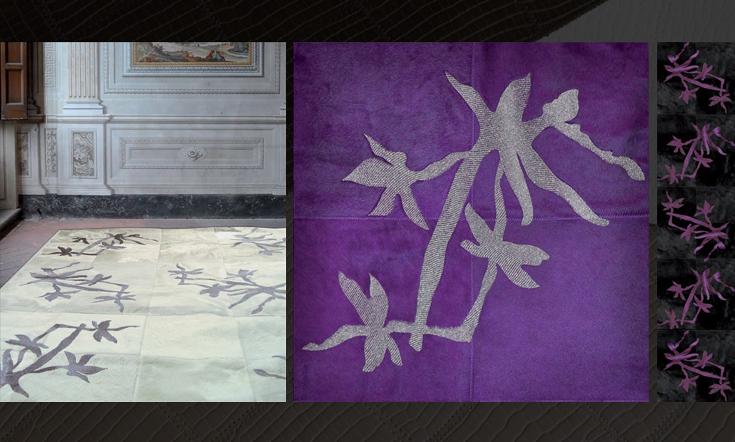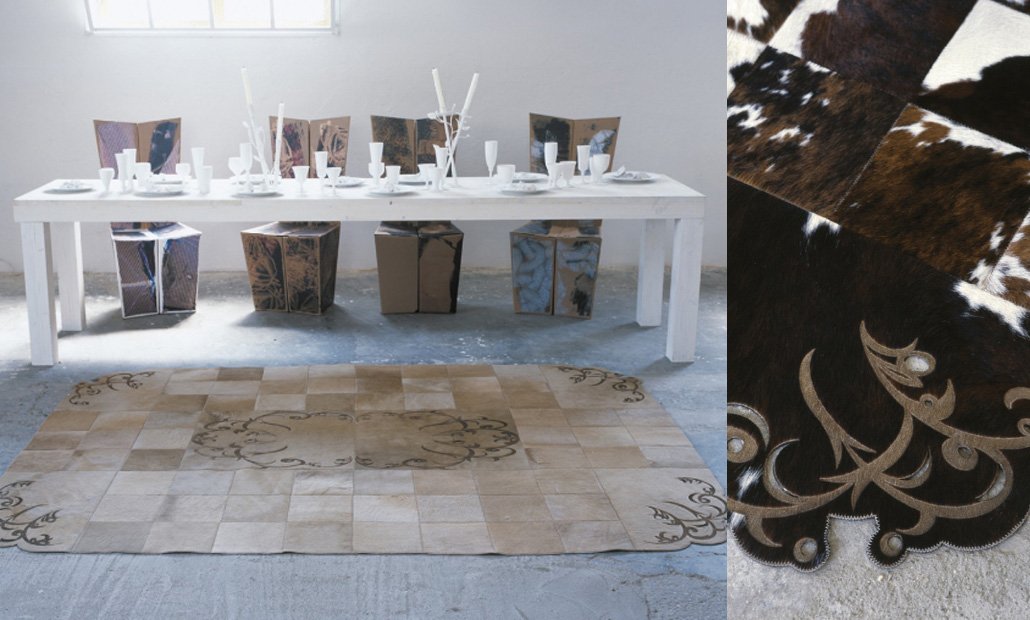 가젤의 퍼를 소재로 만든 핑크빛 소파, 가죽을 컬러풀하게 패치워크한 무지개 패턴, 무려 50만번이나 바늘을 움직여 가죽위에 자수를 놓는 등